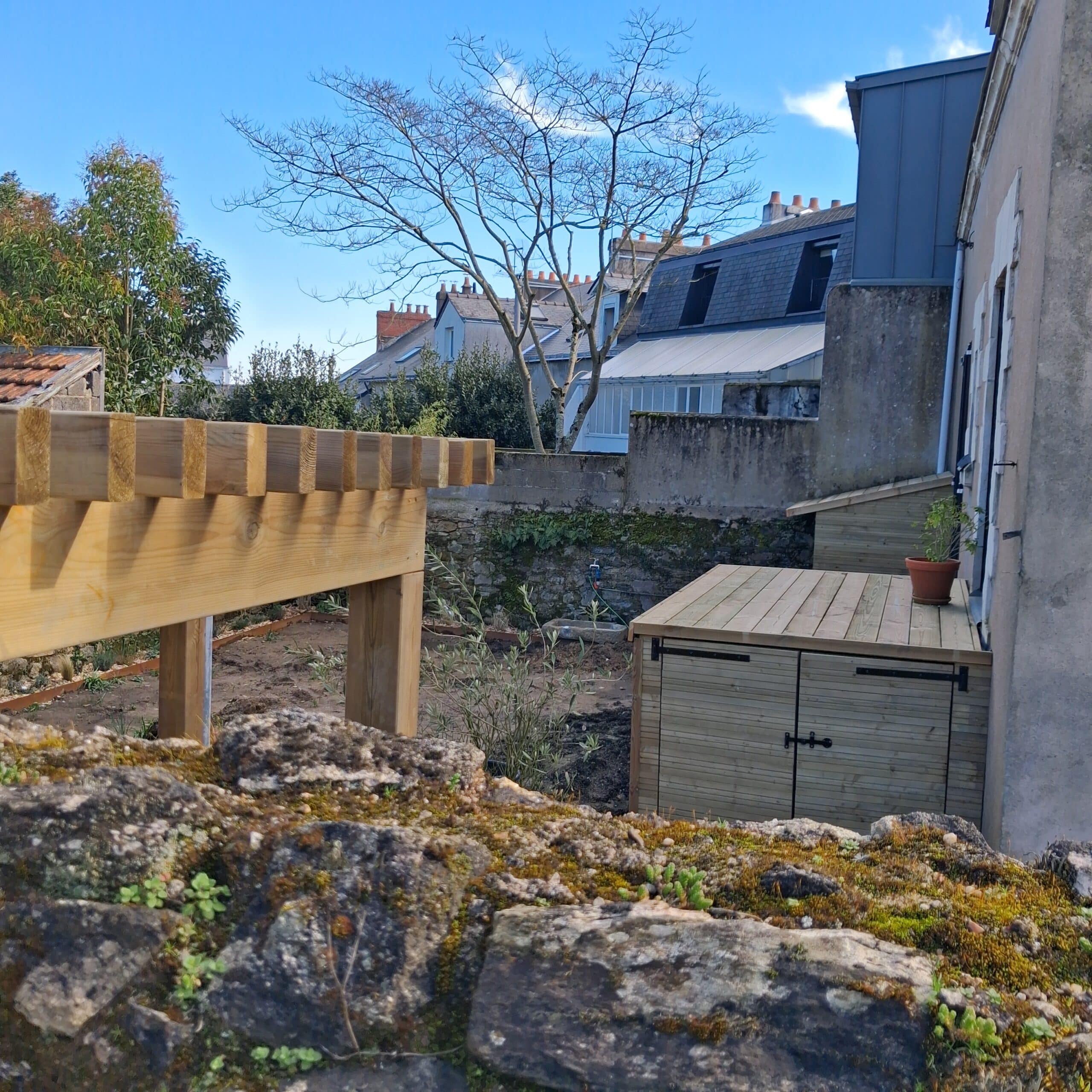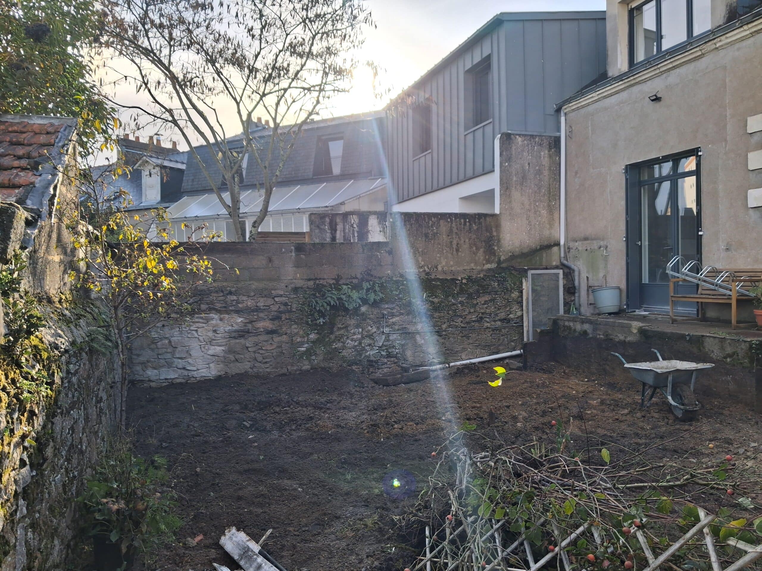 Réaménagement complet d’un jardin de centre-ville avec de nouvelles plantations d’arbustes , d’arbres et de vivaces pour un jardin nantais et champêtre.